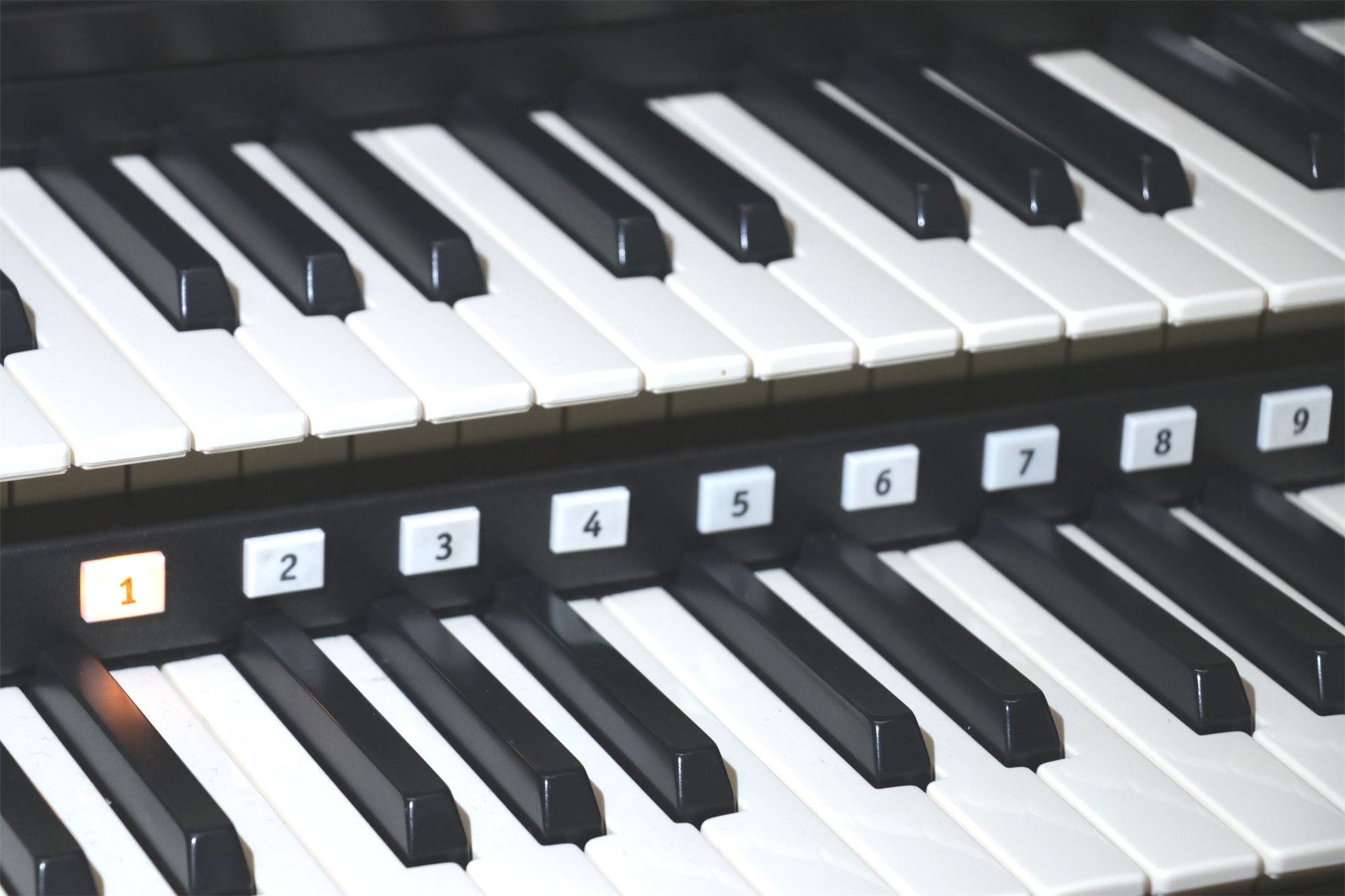 Ober- und Untermanual mit 61 Tasten-Tasten, leicht gewichtet m. Anschlagdynamik