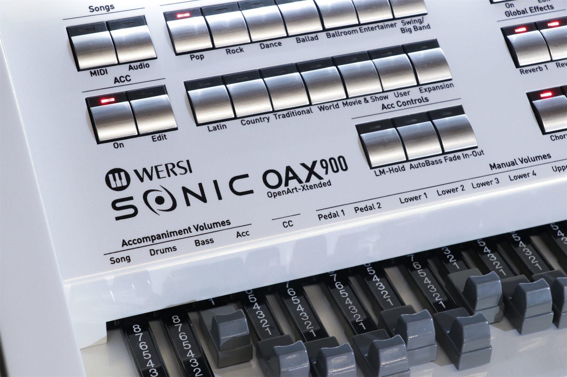 Die OAX-900 steht in der Tradition berühmter Vorgänger, und wird selbst schon bald zu einer Ikone werden. Denn nicht umsonst ist die OAX-900 das bevorzugte Instrument von Profi-Organisten. Dieses exklusive Instrument bietet heute das Machbare an Klangqualität und Spielmöglichkeiten, und das in einer Intensität, die jeden kreativen Musikliebhaber einfach begeistert! Egal, ob Sie klassische Musik, die große Kirchenorgel, Unterhaltungsmusik oder die neuesten Chartstürmer mit pulsierenden Beats und Synthesizerklängen auf Ihrer Orgel spielen möchten: Ihre OAX-900 macht alles mit und lässt Ihr Spiel auf höchstem klanglichen Niveau erklingen. Über zwei große Manuale mit 76 Tasten, beide anschlagdynamisch und mit Aftertouch spielbar, ein anschlagsdynamisches Vollpedal mit 25 Tasten und das intuitive Bedienfeld mit dem großen zentralen 13.3‘‘ Touch-Display dirigieren Sie ihr Orchester, ihre Bigband, ihre Jazzcombo oder ihre Rockgruppe in Echtzeit während des Spielens. Genießen Sie ein musikalisches Erlebnis, wie es eben nur eine Orgel bieten kann - bei der WERSI SONIC OAX-900 in höchster Vollendung!