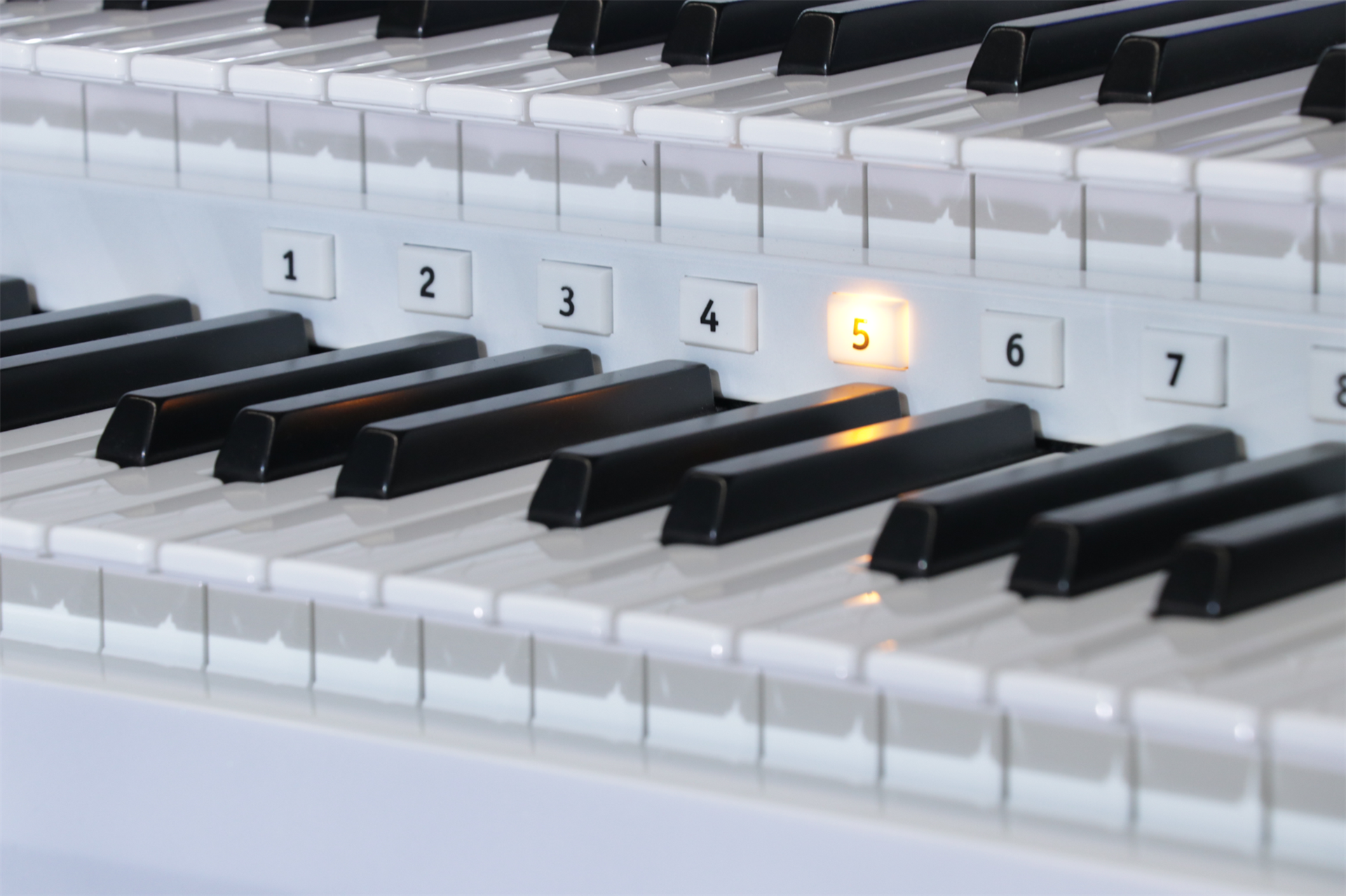Ober- und Untermanual mit jeweils 76 Tasten, leicht gewichtet m. Anschlagdynamik