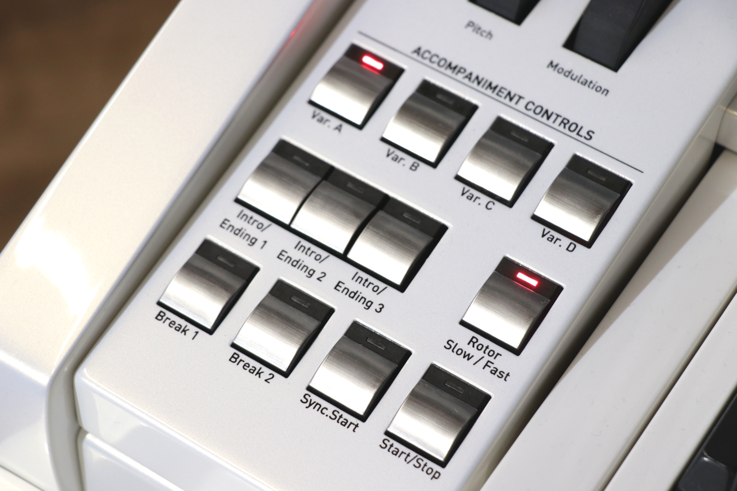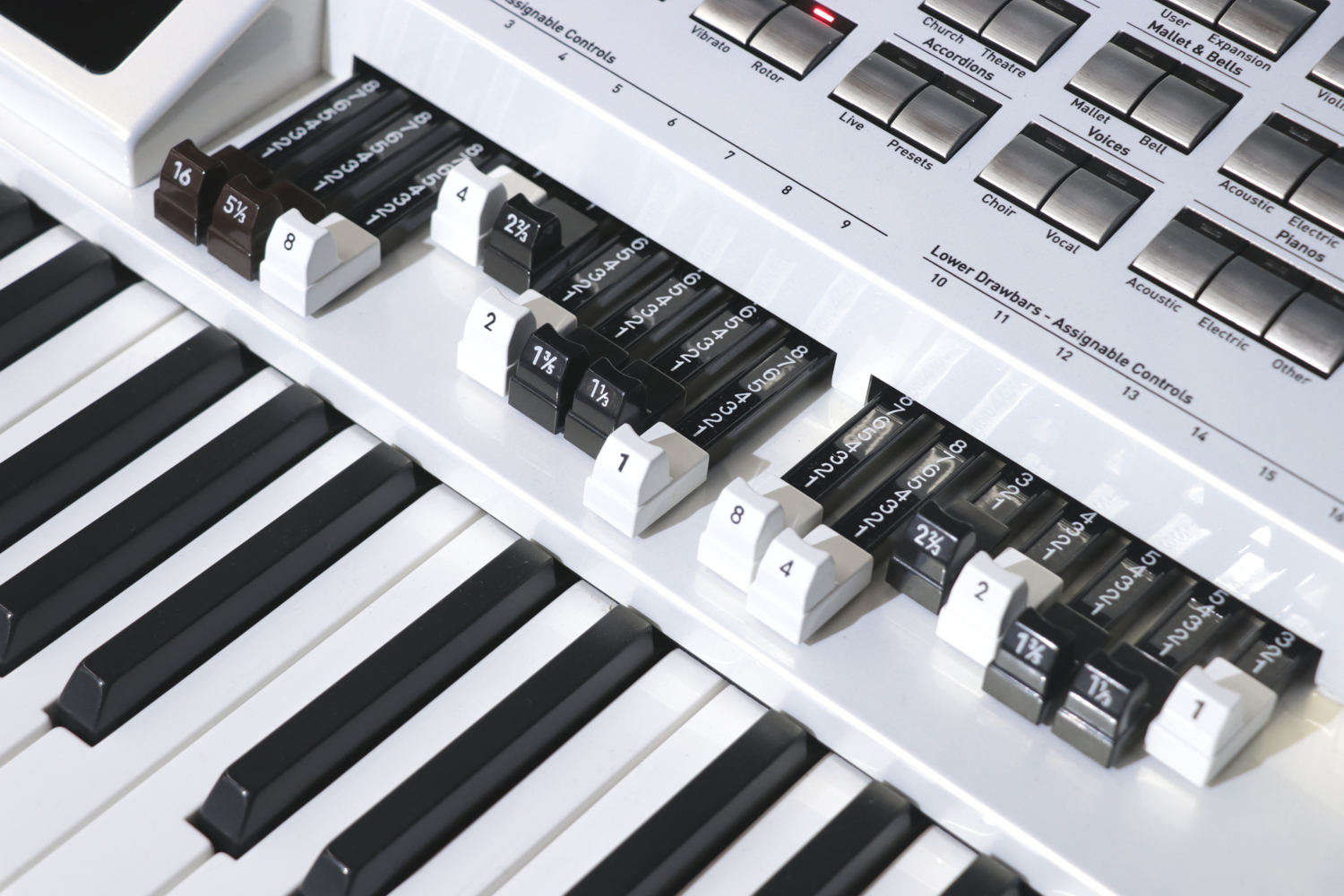 Das OAX1 ist mit einem 76-Tasten Zusatzmanual ausgestattet. Das Instrument ist als vollwertige Orgel einsetzbar. Natürlich lässt sich zusätzlich noch ein 13- oder 17-Tasten Pedal anschließen.