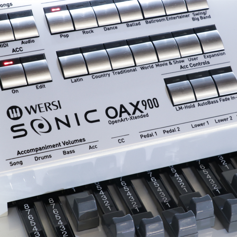 Die OAX-900 steht in der Tradition berühmter Vorgänger, und wird selbst schon bald zu einer Ikone werden. Denn nicht umsonst ist die OAX-900 das bevorzugte Instrument von Profi-Organisten. Dieses exklusive Instrument bietet heute das Machbare an Klangqualität und Spielmöglichkeiten, und das in einer Intensität, die jeden kreativen Musikliebhaber einfach begeistert! Egal, ob Sie klassische Musik, die große Kirchenorgel, Unterhaltungsmusik oder die neuesten Chartstürmer mit pulsierenden Beats und Synthesizerklängen auf Ihrer Orgel spielen möchten: Ihre OAX-900 macht alles mit und lässt Ihr Spiel auf höchstem klanglichen Niveau erklingen. Über zwei große Manuale mit 76 Tasten, beide anschlagdynamisch und mit Aftertouch spielbar, ein anschlagsdynamisches Vollpedal mit 25 Tasten und das intuitive Bedienfeld mit dem großen zentralen 13.3‘‘ Touch-Display dirigieren Sie ihr Orchester, ihre Bigband, ihre Jazzcombo oder ihre Rockgruppe in Echtzeit während des Spielens. Genießen Sie ein musikalisches Erlebnis, wie es eben nur eine Orgel bieten kann - bei der WERSI SONIC OAX-900 in höchster Vollendung!