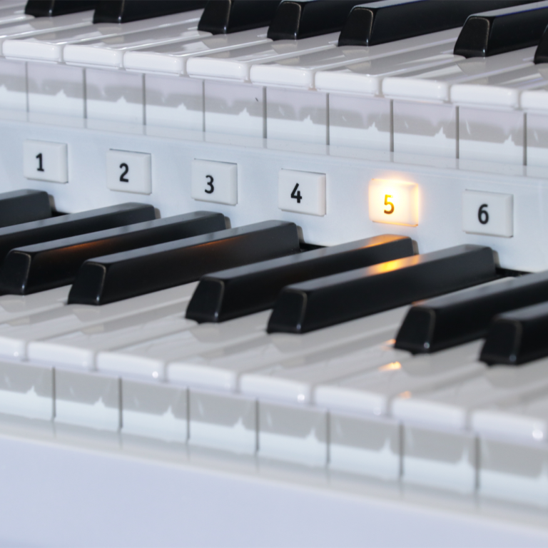 Ober- und Untermanual mit jeweils 76 Tasten, leicht gewichtet m. Anschlagdynamik