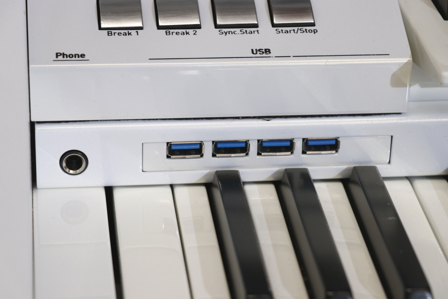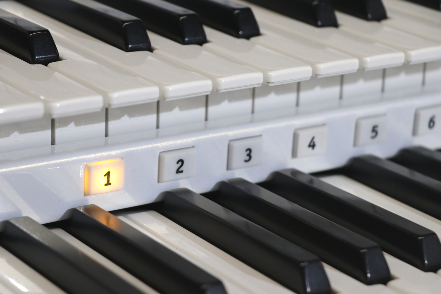 Solo- und Obermanual mit 61 Tasten, Untermanual mit jeweils 76 Tasten, leicht gewichtet m. Anschlagsdynamik