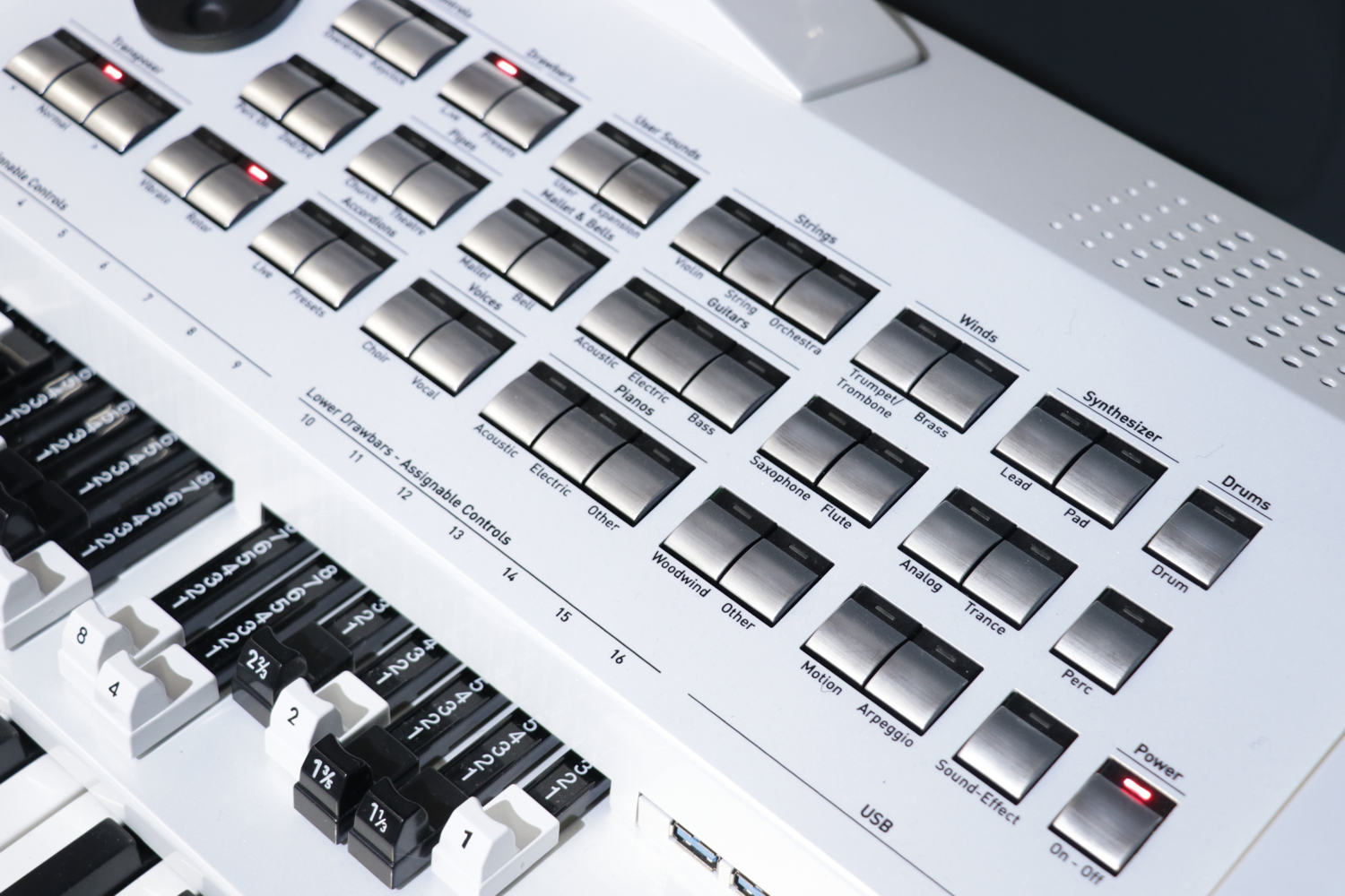 Das OAX1 ist mit einem 76-Tasten Zusatzmanual ausgestattet. Das Instrument ist als vollwertige Orgel einsetzbar. Natürlich lässt sich zusätzlich noch ein 13- oder 17-Tasten Pedal anschließen.