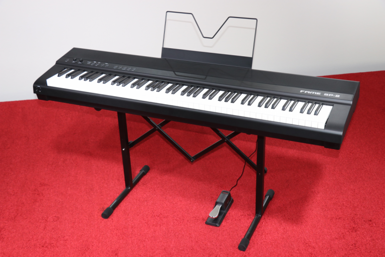 Das FAME SP-2 ist ein sehr schickes Stagepiano mit einer gewichteten 88 Tasten Hammermechanik-Klaviatur und einem kraftvollen 20 Watt Stereo Lautsprechersystem. Das gut spielbare Instrument richtet sich gleichermaßen an Einsteiger wie auch Profis und überzeugt 25 verschiedenen Sounds, die sich bei Bedarf mit Reverb und Chorus Effekten veredeln lassen und zahlreiche Stilistiken abdecken.